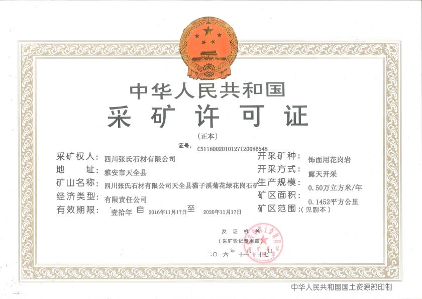 四、菊花綠開采許可證: